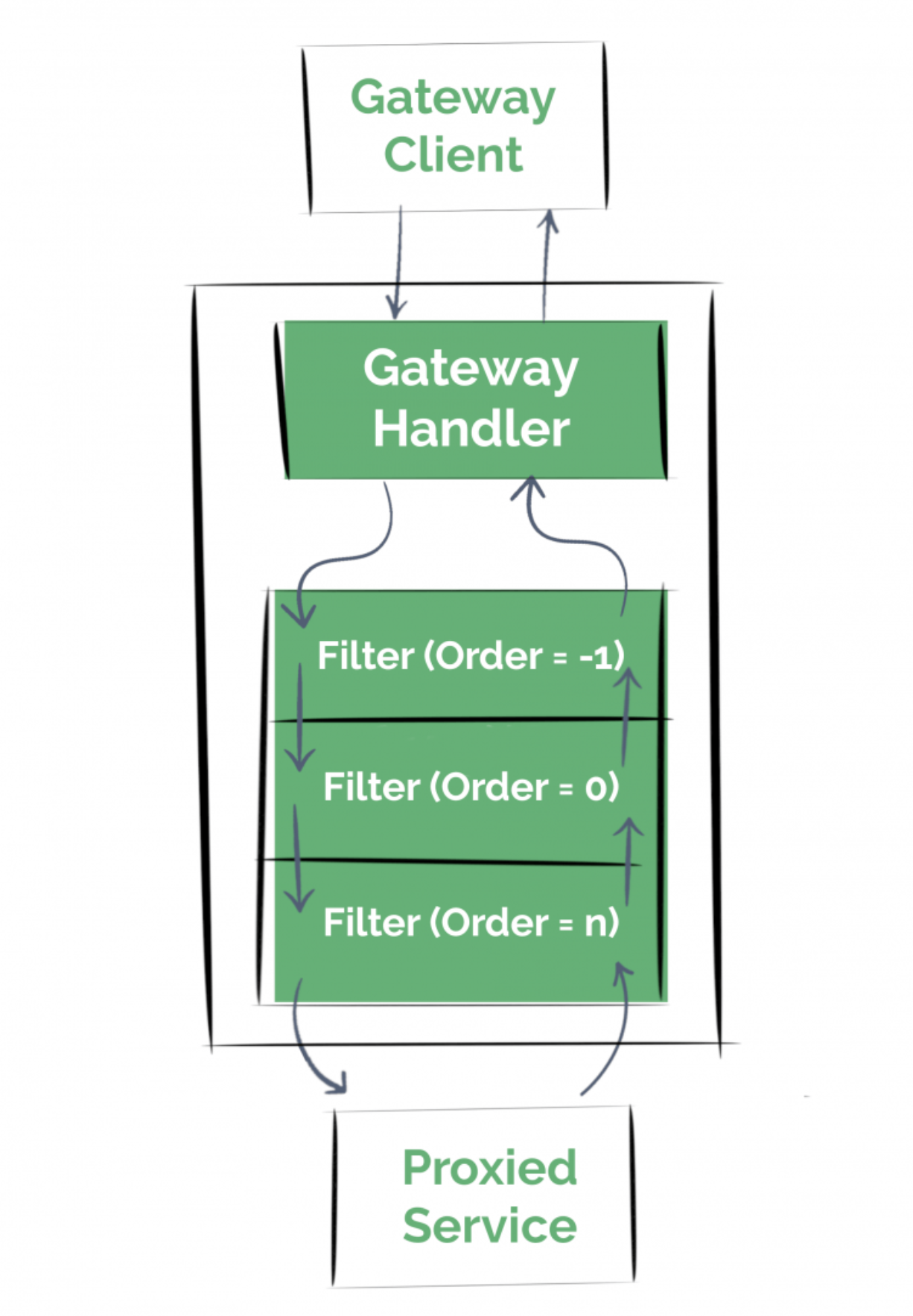 여러 필터들을 선언 해두면, 해당 필터들을 거쳐서 실제 서비스로 라우팅이 된다.