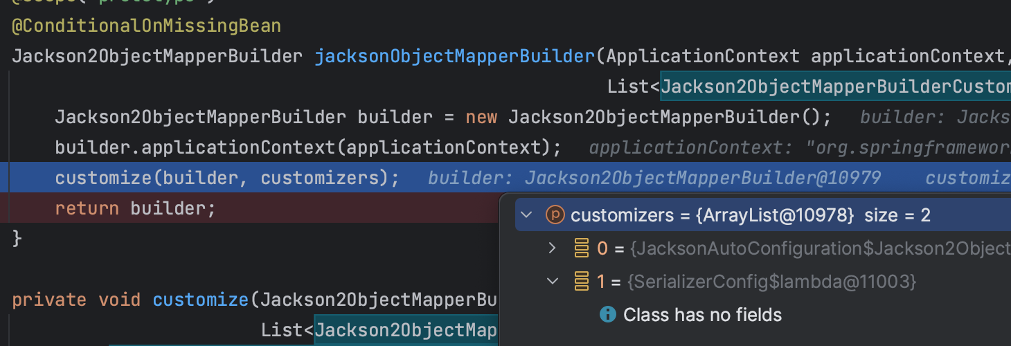 위에서 등록한 customizer Bean 이 이 시점에 등록되는 것이다.