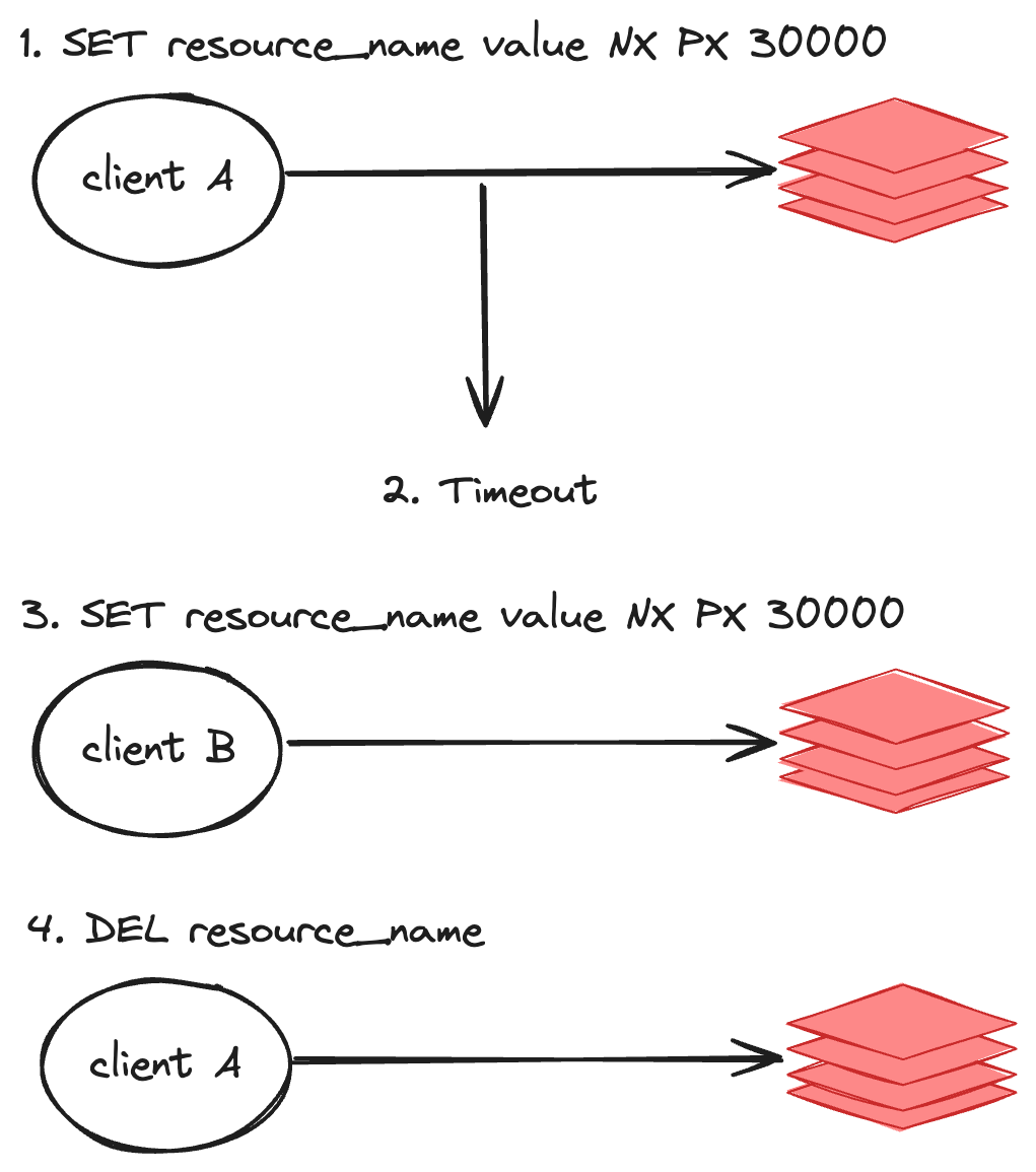 이 경우, client A 가 lock 을 해제하기 전에, client B 가 lock 을 획득함으로써,