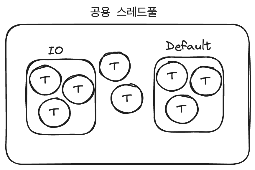 그것은 바로 개별적으로 CoroutineDispatcher 를 정의하는 경우, 스레드가 비효율적으로 생성되거나 관리될 수 있기 때문이다. 스레드를 제대로 관리하지 않는 경우, CPU 와 메모리가 스레드의 생성과 실행 등으로 리소스를 낭비할 가능성이 커진다.